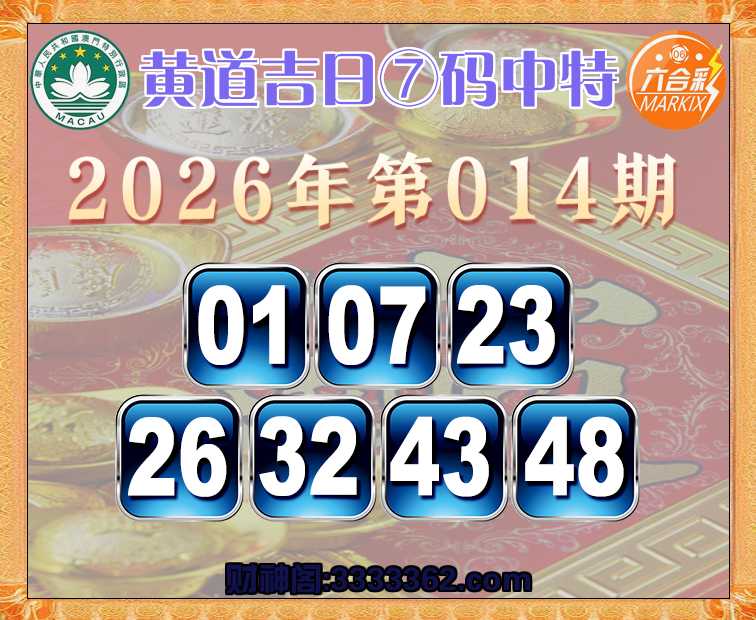 014期:《黄道吉日》 🍔⑦码中特🍔【01.07.23.26.32.43.48】开:26