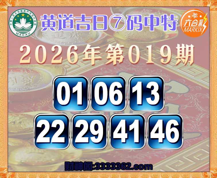 019期:《黄道吉日》 🍔⑦码中特🍔【01.06.13.22.29.41.46】开:46