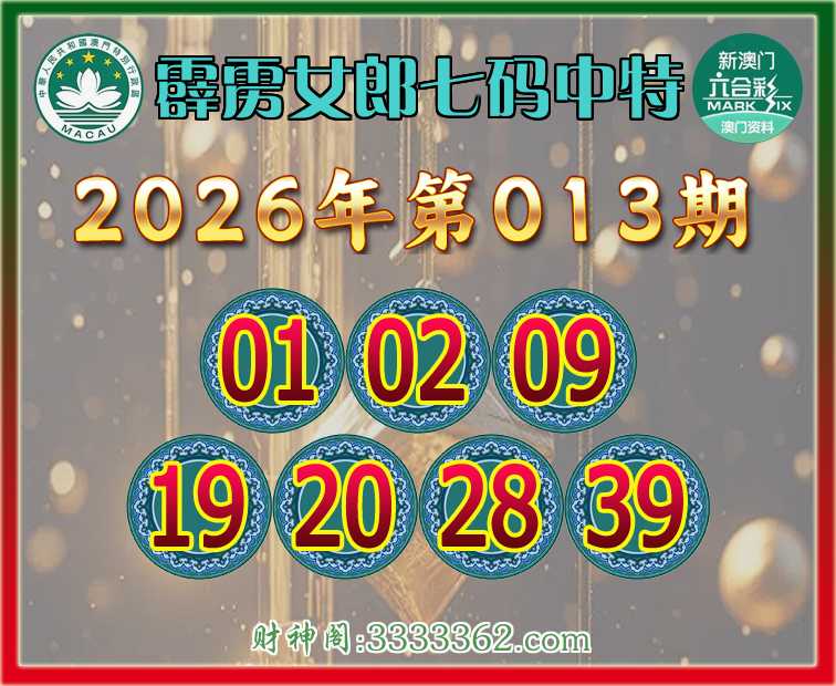 013期:『霹雳女郎』 👑七码中特👑【01.02.09.19.20.28.39】开:01