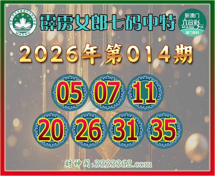 014期:『霹雳女郎』 👑七码中特👑【05.07.11.20.26.31.35】开:26