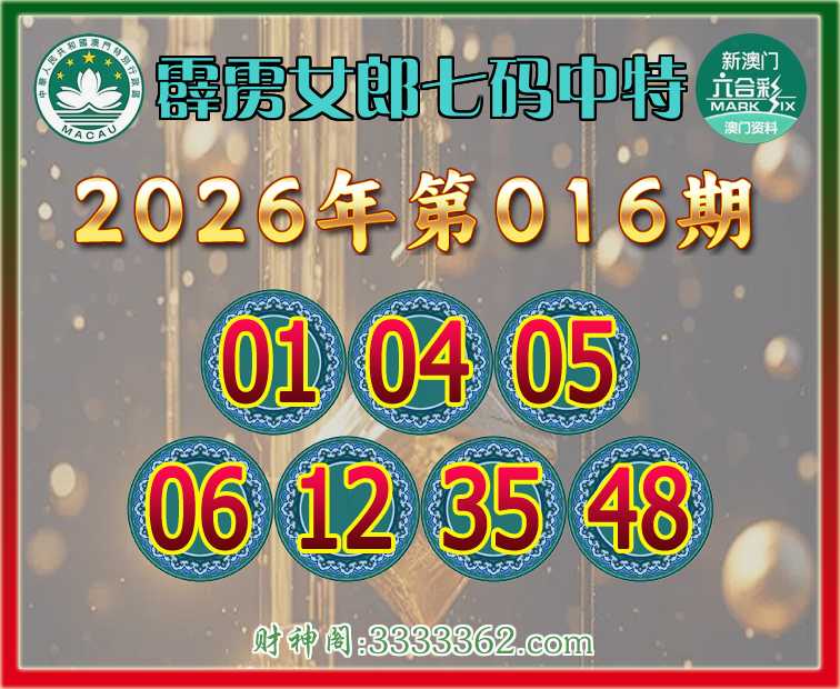 016期:『霹雳女郎』 👑七码中特👑【01.04.05.06.12.35.48】开:06
