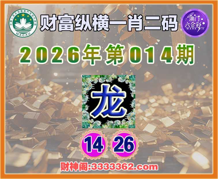 014期:《财富纵横》 ♠️一肖二码♠️【】【14.26】开:龙26