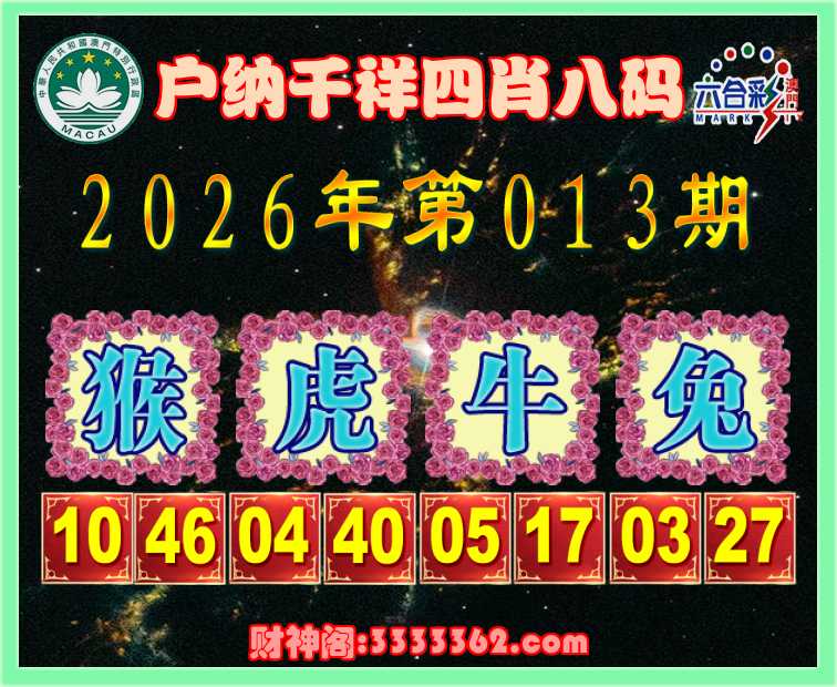 013期:《户纳千祥》 🏇四肖八码🏇【猴虎牛兔】开:蛇01