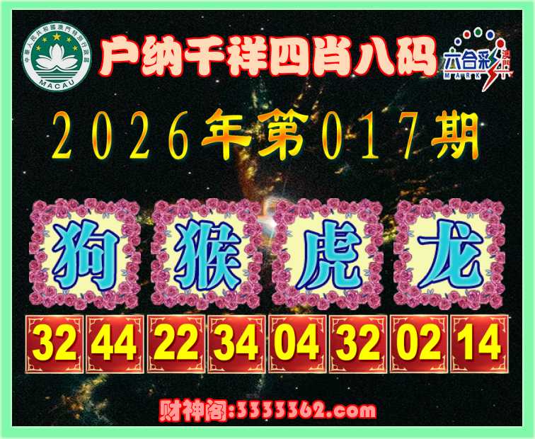 017期:《户纳千祥》 🏇四肖八码🏇【猴虎龙】开:狗32